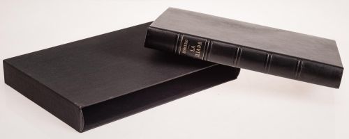 Presented in a book with covers covered in black embossed leather. Translated into Spanish verse by Jose Gomez Hermosilla. Measurements: 36.5 x 26 x 4.5 cm