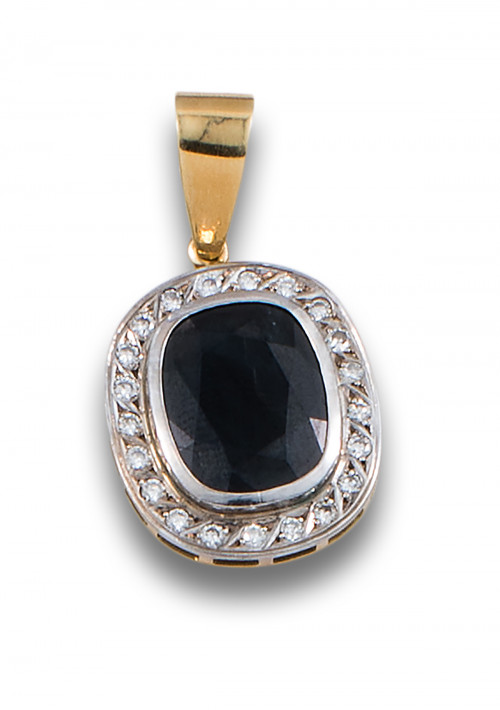 COLGANTE DE ZAFIRO, DIAMANTES Y ORO