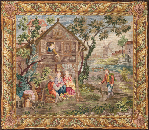 Bordado en petit point representando una escena campestre según los modelos de los cartones para tapices de David Teniers