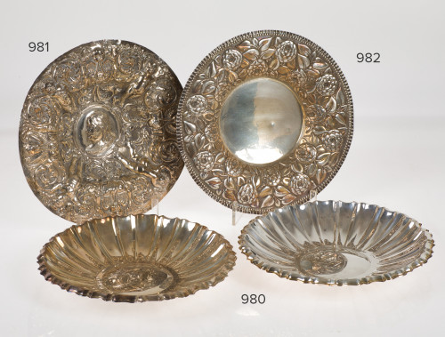 Centro en plata española ley 916, con ancha ala de decoración floral.