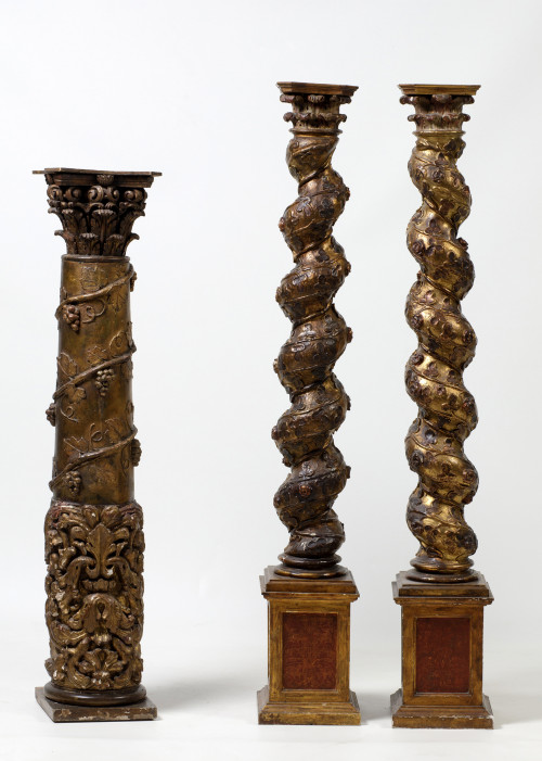 Realizada con algunos elementos antiguos. Capitel de orden corintio y fuste decorado con rocalla y racimos de uvas.