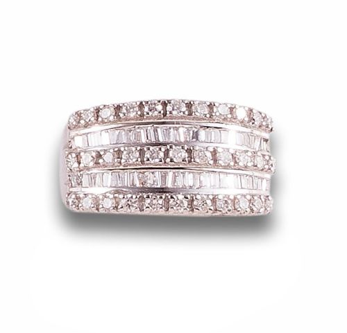 18kt white gold ring. Formed by bands of brilliant-cut and baguette-cut diamonds, estimated total weight 2 ct. Set in grain and channel settings.