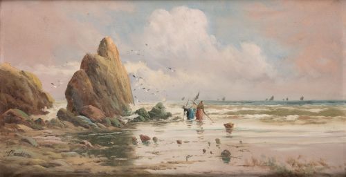 FRENCH SCHOOL (Early 20th century) "Shellfish harvesters"