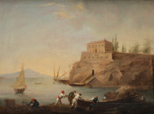 ESCUELA NAPOLITANA , "Pescadores napolitanos", Óleo sobre l