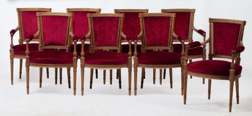 Eight Louis XVI style armchairs, possibly Herráiz, Spain, 2