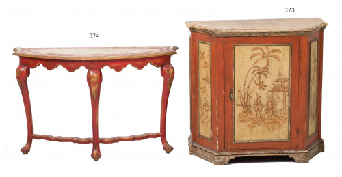Entredós de madera policromada con decoración de chinerias, S.XVIII. Policromía posterior. Pequeñas faltas. Medidas: 97 x 104 x 49 cm