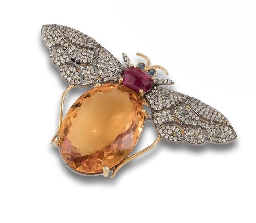 FLY BROOCH WITH DIAMONDS, CITRINE, TOURMALINE AND SAPPHIRES