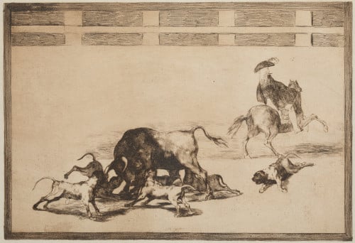 FRANCISCO DE GOYA Y LUCIENTES Fuendetodos, Zaragoza (1746) / Bordeaux (France) (1828) "They throw dogs at the bull"