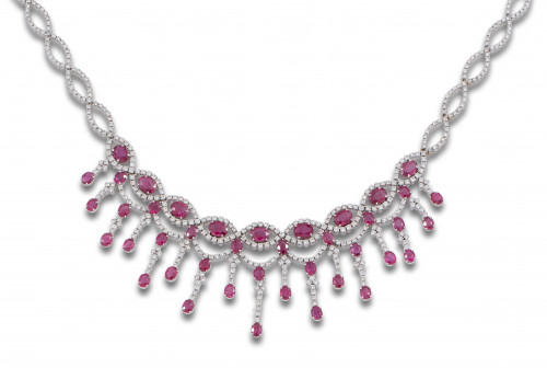GARGANTILLA DE RUBÍES, DIAMANTES Y ORO BLANCO