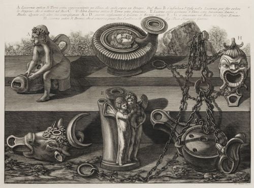 Chemical etching Signed on plate under the image: “Cav. Piranesi F.”. No. 11 from the series “Vasi, candelabri,……lucerne ed ornamenti antichi disegnati ed incisi dal Cav. ……”. Rome, 1778. Measurements: Imprint: 38 x 52.5 cm