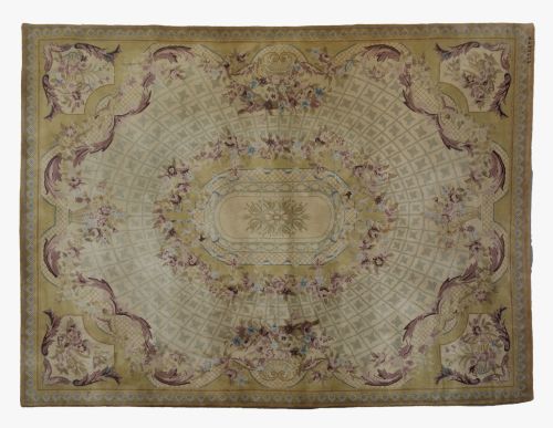 Ochre colour with aubergine-toned decoration. Dimensions: 360 x 273 cm.