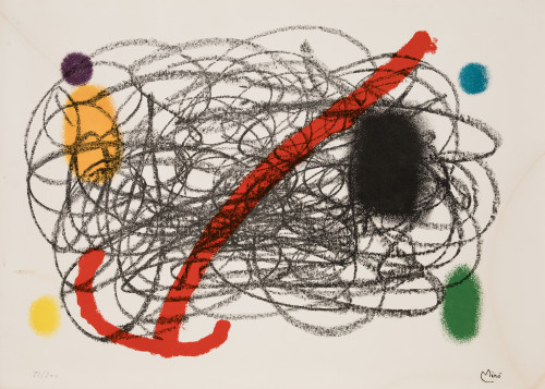 Firmada en plancha y numerada a lápiz 81/300. Editada por Maeght, sello en seco Maeght editeour, París. Esta obra sirvió para ilustrar una de las litografías a doble página de derrière le miroir, nº 125-126 de 1961, con texto de René Char.