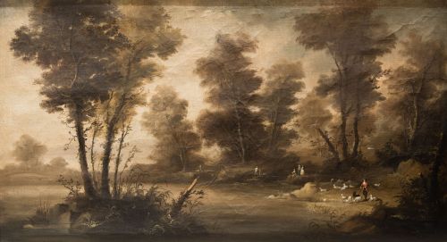 Oil on canvas. Signed in the lower right corner. Dimensions: 110 x 200 cm.