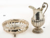 Jarra de agua de plata española ley 916, platería Agruña, S. XX. con decoración gallonada y asa en forma de voluta.