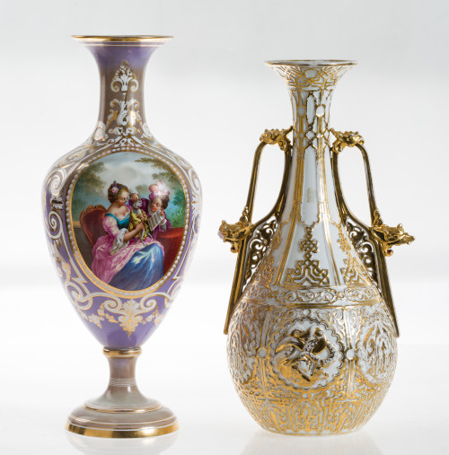 Jarrón de porcelana esmaltada y dorada, España, c. 1900