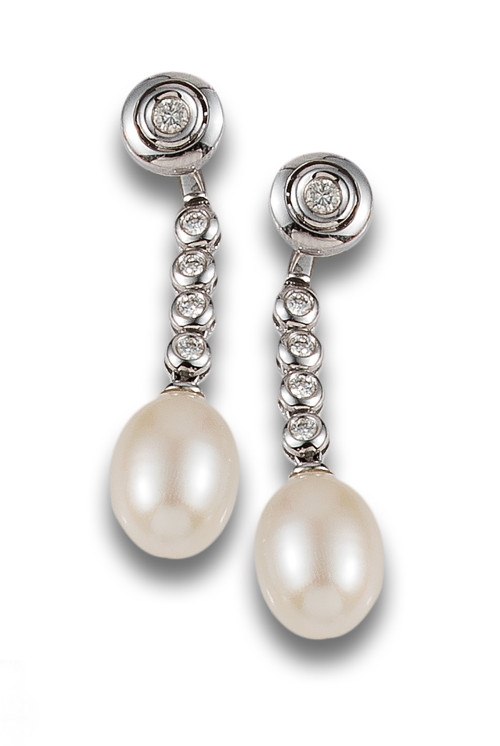 LONG DIAMONDS AND PEARLS EARRINGS, IN WHITE GOLD, REMOVABLE