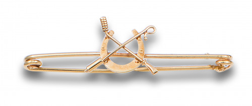 LOTE DE DOS ALFILERES DE MOTIVOS ECUESTRES EN ORO AMARILLO