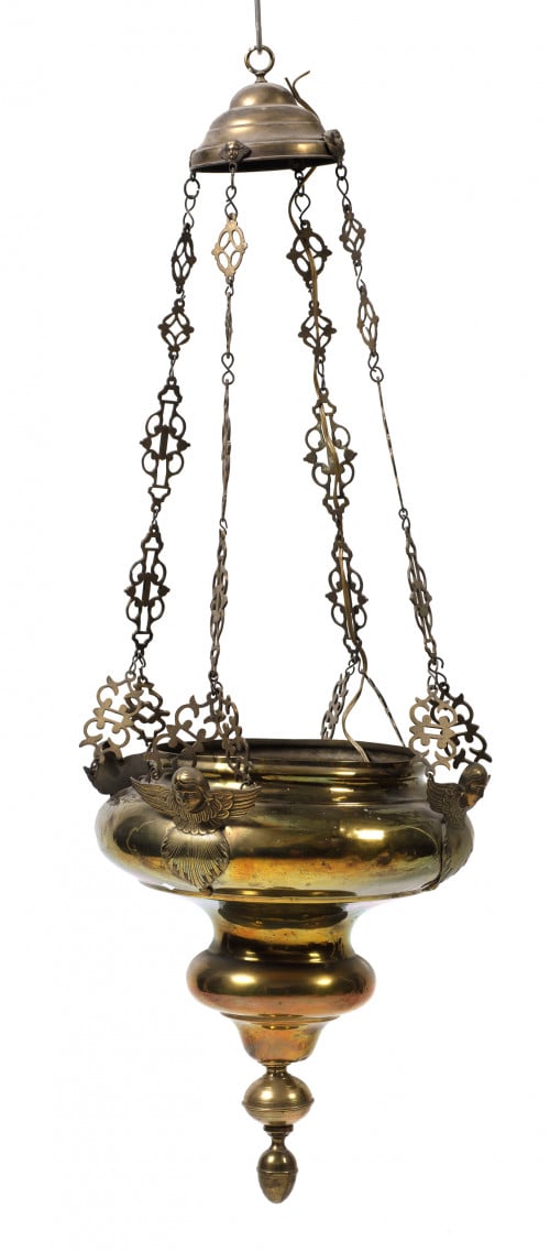 Lámpara votiva de metal dorado, España, med. S. XX