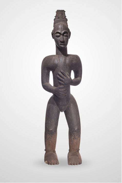 The sculptors, who live from agriculture, devote only part of their time to sculpture. The Lobi do not wear masks, but create male and female spirit figures called Bateba and sculpted heads on a pole placed in the ground. Bateba is considered a living being and can see, communicate and intervene on behalf of its spirit. In each house there is a small shrine dedicated to the worship of ancestral spirits. Height: 124 cm Reproduced: Catalogue “Africa Babel: the Art of a Continent”, p.- 127 ctro