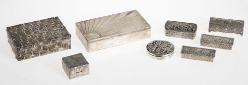 Marks 916 and 925. Decoration with scenes and floral motifs in relief. Total weight: 410 gr.