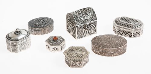 Lot consisting of seven silver boxes, without marks.
