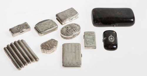Lot of eight cigarette cases, pillboxes and lighters made o