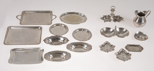 Lote de 2 bandejas, 2 tarjeteros, 2 platillos y 3 centros ovalados, S.XX