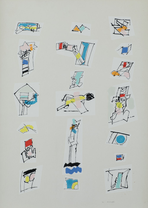 Firmada en plancha "H. Mompó". Esta obra forma parte de una carpeta compuesta de seis serigrafías editadas por el Museo de Arte Abstracto Español. Realizadas por el artista en el año 1971 reciben el nombre de "Seis escenas cotidianas".