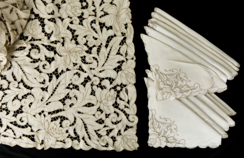 Con 12 servilletas. Con algunas manchas por el paso del tiempo.