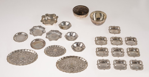 Once centritos de plata de diferentes manufacturas y decoraciones, España, S.XX
