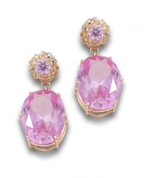 PENDIENTES LARGOS, ESTILO ANTIGUO, DE ROSAS DE FRNACIA Y OR