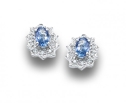 PENDIENTES ROSETONES DE ZAFIROS, DIAMANTES Y ORO BLANCO