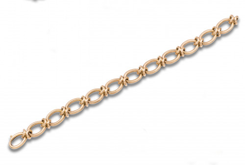 Pulsera de eslabones ovales calados de oro amarillo de 18 kt. Peso: 14 Gr..