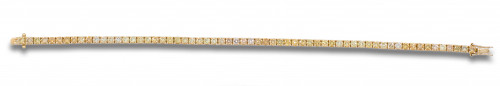 Pulsera riviere de oro amarillo de 18 kt. Formada por hilera de diamantes yellow, talla brillante, peso total estimado de 4.50 ct. Engastados en garras. Sistema doble ocho de seguridad.
