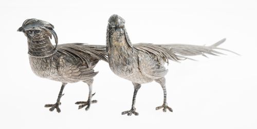 Pair of Spanish silver pheasants, 916 grade, 20th century