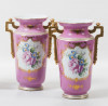 Pareja jarrones porcelana rosa con cartelas flores