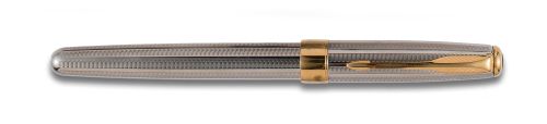 PARKER SONNET fountain pen, silver and gold plated metal body. 18 kt yellow gold nib. Filling system by converter and/or cartridge. Shows signs of wear.