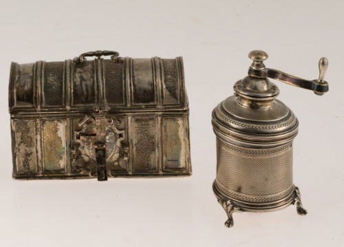 Pequeño cofre en plata S.XVII, con burilado y sin marcas. Decoración con vervios y cerradura de espejuelo. Peso: 225 gr. Medidas: 7 x 10,5 x 5 cm.