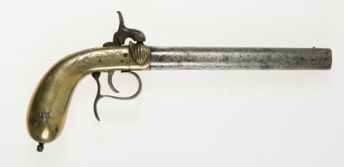 Pistola europea para el gusto oriental de pistón con guarnición de bronce, S.XIX