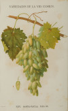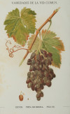 Dos variedades de uva pintadas del natural y litografiadas en color para la edición ilustrada de la obra de Clemente y Rubio: “Variedades de la Vid”, con motivo de la Primera Exposición Vinícola Nacional en 1877.