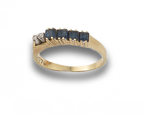 SORTIJA DE ORO, DIAMANTES Y ZAFIROS