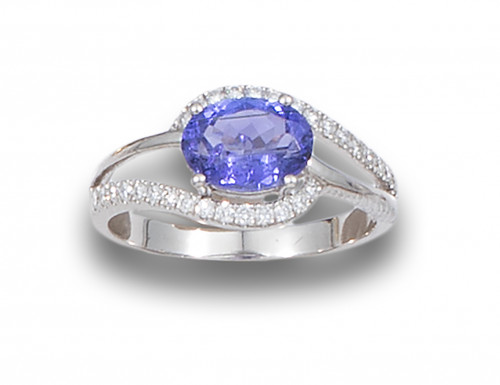 SORTIJA DE TANZANITA, DIAMANTES Y ORO BLANCO
