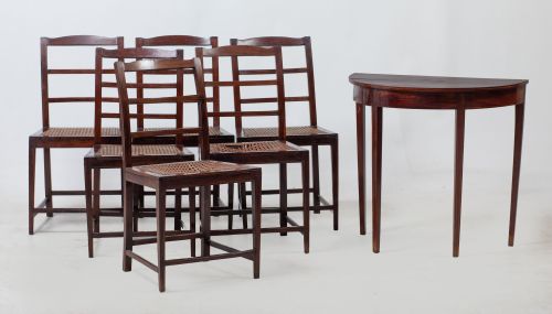 With lemongrass binding and hand-woven lattice seats. Constructed with toretes following the original patterns. Measurements: 85 x 47 x 36 cm each.