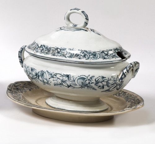 Sopera con presentador, de loza esmaltada, Inglaterra, pps.