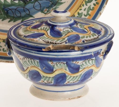 Sugar bowl in Manises ceramic, glazed and polychrome. 19th-