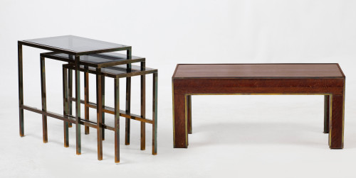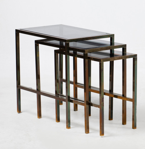 Three nesting tables in gilt brass and smoked glass, Spain,
