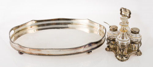 Vinagreras de cristal doblado, tallado y parcialmente dorad