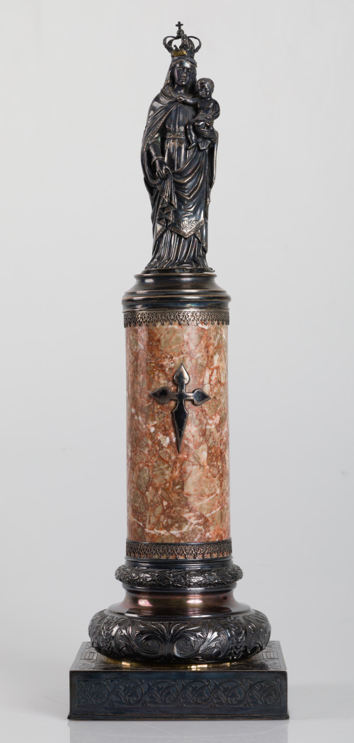 Con pilar de mármol brocatel. Firmada en el manto y en la base. Presenta pequeñas faltas.