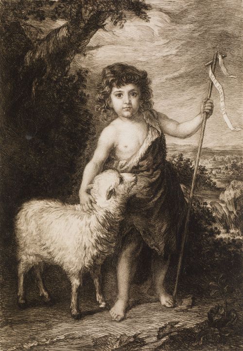 Etched by Unger, after the painting painted by Murillo, around 1646, as a pair of “The Children of the Shell”. In both, Saint John with the lamb and a cross with phylactery inscribed: "ECCE AGNUS DEI" Measurements: Paper: 42 x 34 cm; Footprint: 32 x 25 cm