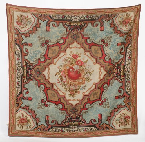 Decorated with flowers and seed beads. Needs to be reworked. Dimensions: 197 x 190 cm.